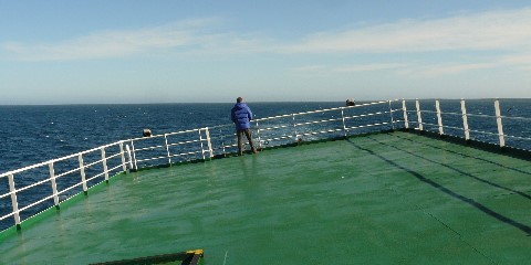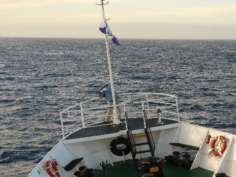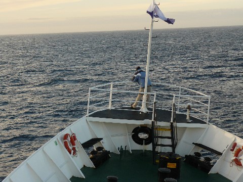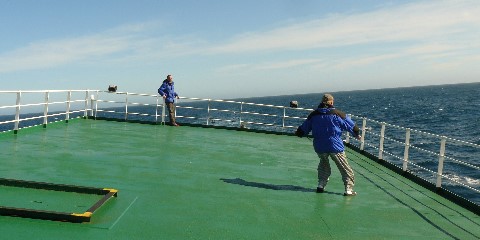Als unser Schiff den ruhigen Beagle-Kanal verläßt und die Drake-Passage erreicht, bekommen wir einen ersten Eindruck, der Wind läßt das Schiff rollen |