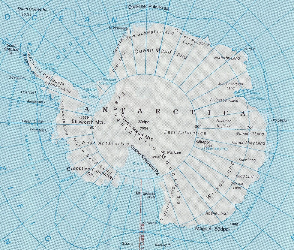 Antarktis, die Durchschnittshöhe beträgt 2050m, Antarktis, die Eisdicke beträgt bis zu 5000m, Antarktis, 84% des Eises der Welt sind auf diesem Kontinent, |