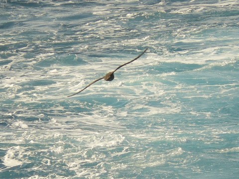So tolpatschig diese riesigen Vögel beim Starten und Landen auch sein mögen, so elegant schweben sie durch die Lüfte. Albatrosse, wenn sie nicht brüten schweben sie immer in der Luft, manchmal so knapp über den meterhohen Wellen, daß die Flügespitzen die Wasseroberfläche berühren. |